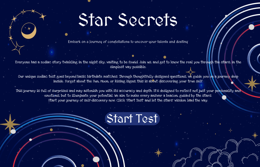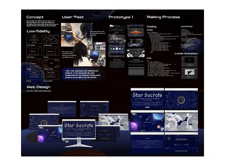 In order to explore the psychological phenomenon behind the constellation, I found that the Barnum effect can make people believe in the constellation more, so by establishing a constellation test website with fixed answers, I hope to let people find out that they are actually affected by the Barnum effect through the test process.